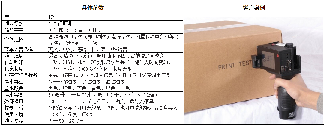 HP惠普手持噴碼機 HP主要用于木工板、紙箱、石材、中纖板、輕鋼龍骨、管材、金屬、塑料、鋁箔、線纜;HP手持噴碼機是全內(nèi)置充電式噴碼機,采用進口油性墨水,可在一系列的多孔和半孔物體表面進行噴印,如紙張/木材/纖維等滲透型材料。若采用溶劑性墨水可在其他非滲透型材料表面噴印,如塑料/金屬/材料等。具有一機多用,清晰度高,性能穩(wěn)定,噴印速度快,使用壽命長,字跡清楚,耗電量小,耗材經(jīng)濟,操作簡便等多種優(yōu)點。體積較小,內(nèi)部裝有進口鋰電池供電,可連續(xù)待機15小時以上,外置墨盒,全封閉式墨路,快速更換墨盒,絕不浪費一滴墨水。非常適合需要信息經(jīng)常變動,非生產(chǎn)線產(chǎn)品及場合。